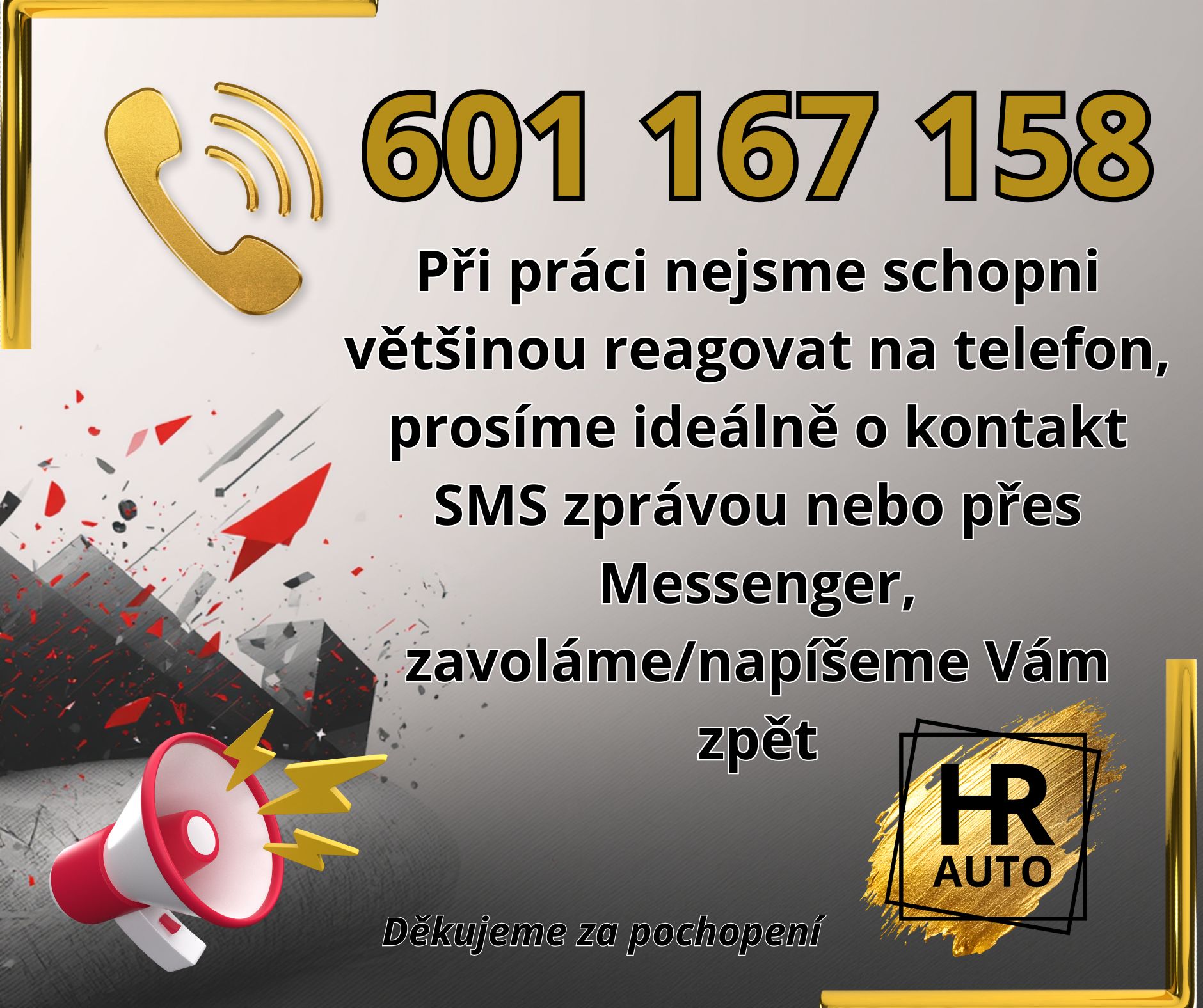 Během práce nejsme vždy schopni zvednout telefon, pokud se nedovoláte PROSÍM zašlete sms a my se Vám ozveme zpět.